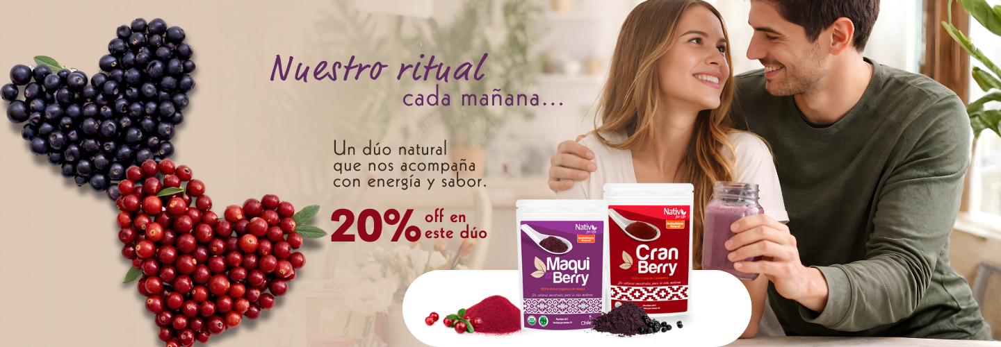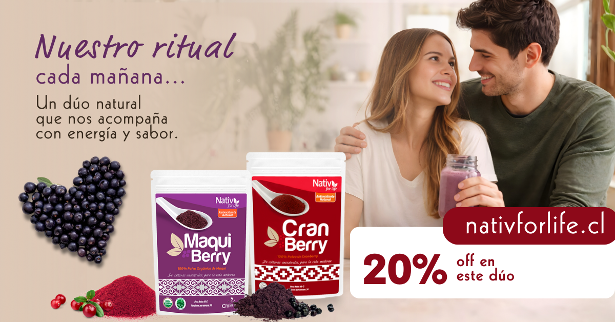 El maqui es una fruta nativa del sur de Chile, reconocida por su intenso color y su contenido natural de antocianinas y polifenoles, compuestos antioxidantes presentes en frutas de tonos oscuros.