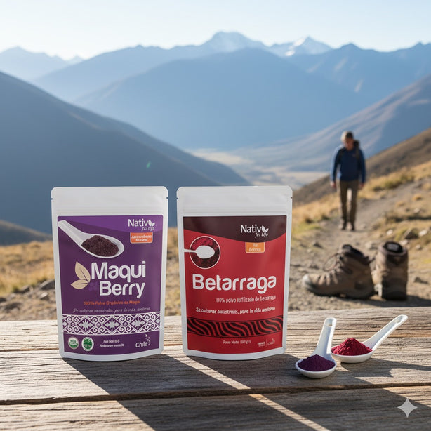 Es una baya silvestre nativa del sur de Chile (Patagonia chilena), conocida como el “berry chileno”. Su color púrpura intenso se debe a su alta presencia de antocianinas, un tipo de polifenoles (compuestos naturales presentes en plantas) asociados a la capacidad antioxidante del fruto. También aporta vitaminas, incluyendo vitamina C, y otros compuestos bioactivos propios de los frutos rojos.